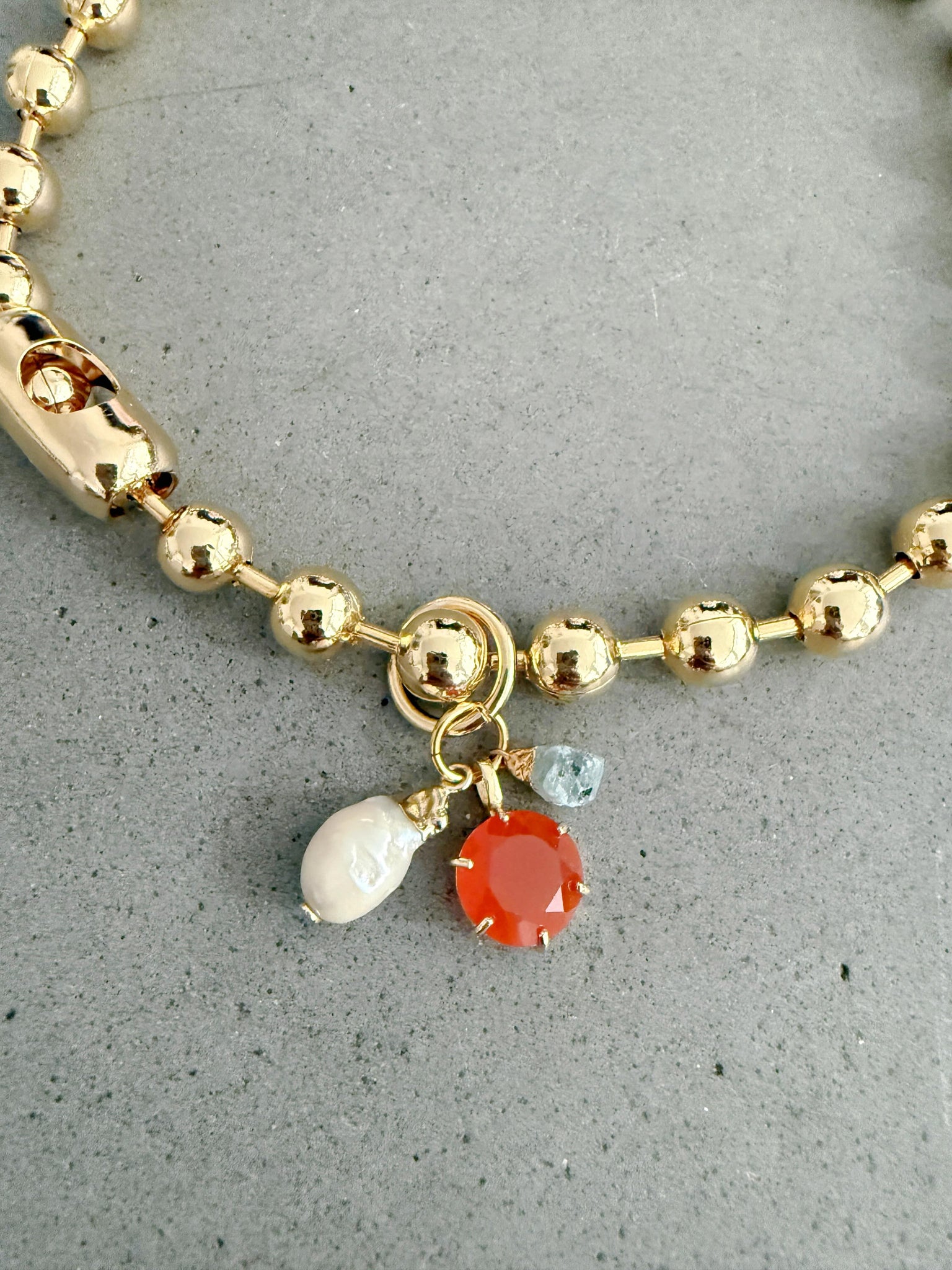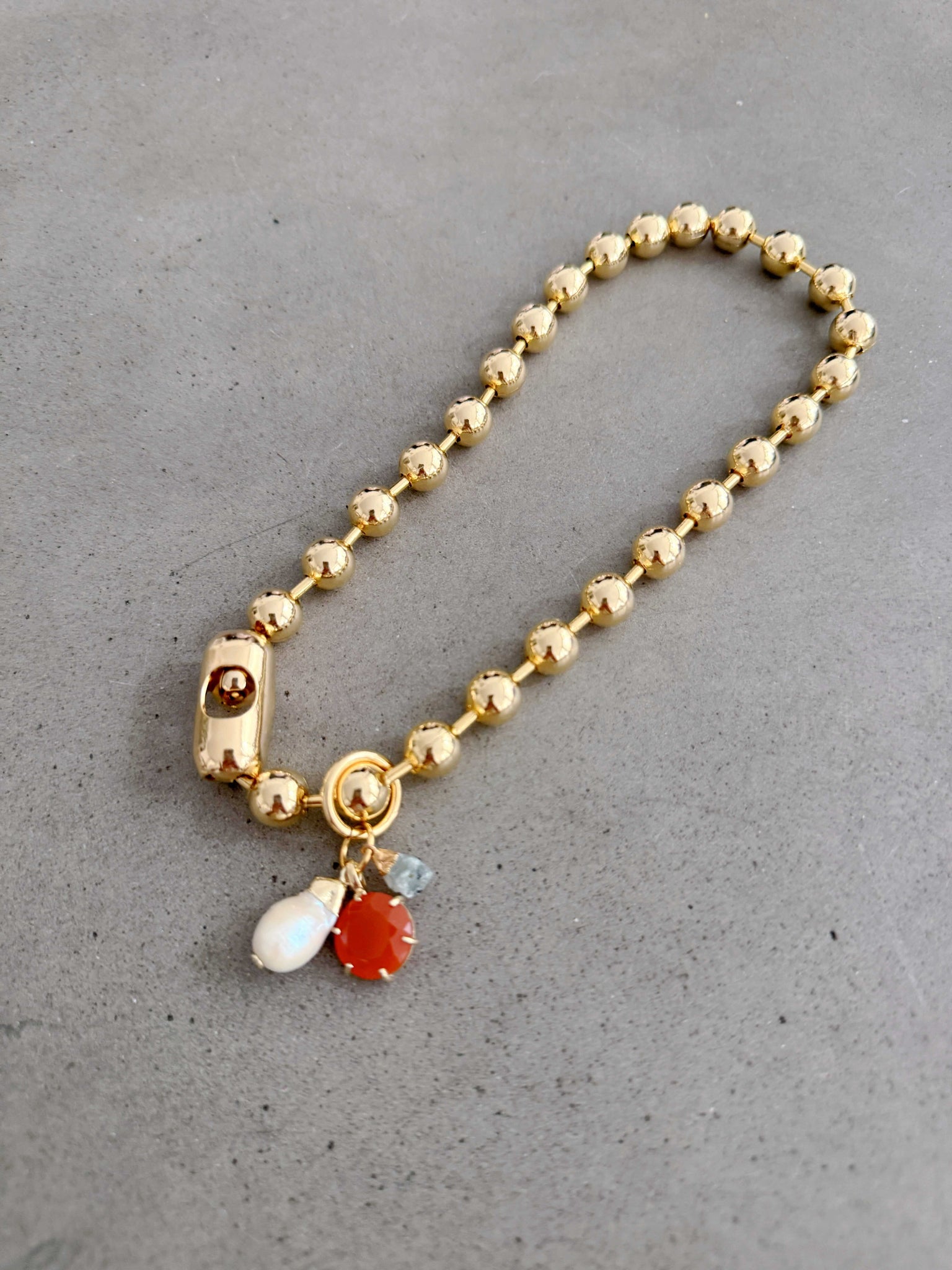 Bold, sculptural, and endlessly versatile, the Astor Ball Chain Necklace is designed as a modern statement piece. A chunky gold-plated ball chain creates a strong, polished foundation that can be worn on its own or customized with one of our signature gemstone clusters.
